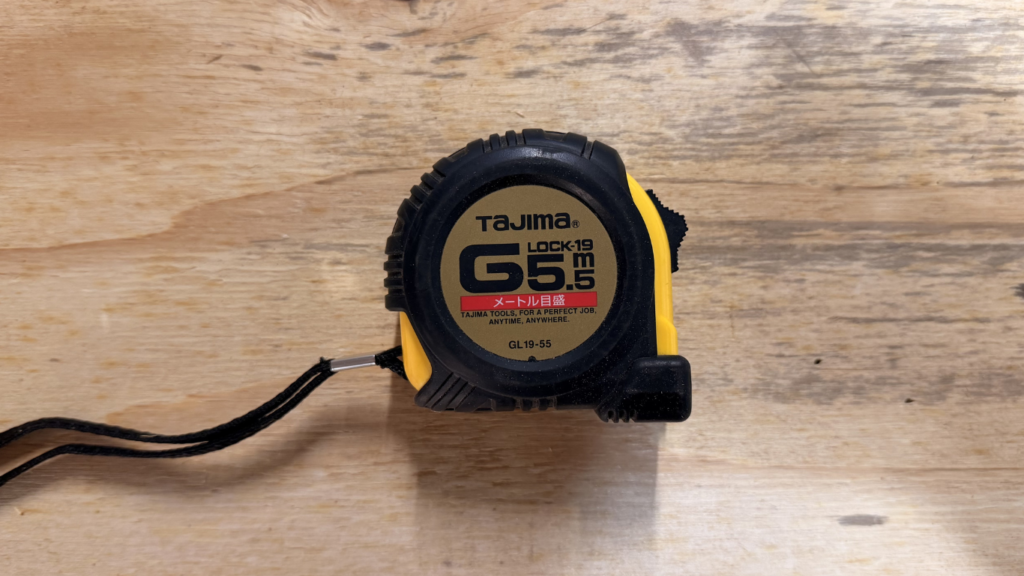 先ほど紹介した曲尺でも寸法は測れますが、30cm以上の木材を測るときは、コンベックスの出番。