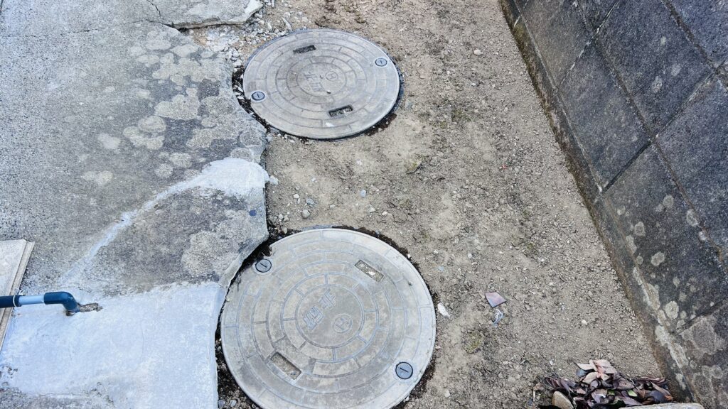 我が家の単独浄化槽。家の裏側に埋め込まれています。